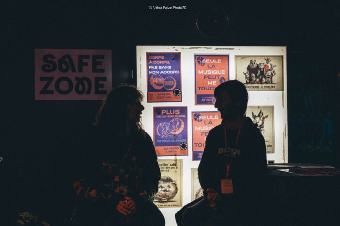 La safe zone est aussi l’endroit où n’importe quel festivalier, enfin surtout festivalière, qui subit une agression, ou ne serait-ce qu’une drague lourdinge, peut se réfugier. Je trouve l’idée très bonne. Je demande :