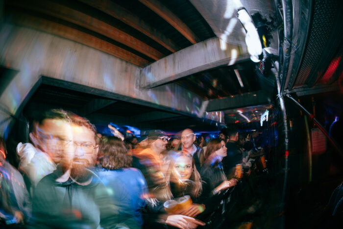 Nous nous déportons donc au niveau du Besac Sound System, avec les enfants, et j’ai cette révélation : ce sera la première expérience de teuf techno pour mes deux filles, âgées de 11 et 15 ans. Est-ce une bonne chose ? Pas le temps de répondre à cette question, puisque Feet envoie direct un gros son, quasi hardcore, qui plaque en arrière les cheveux de la plus petite. Elle écarquille les yeux, elle n’était pas prête. Elle écoute de la K-Pop, donc là, c’est compliqué. Ma grande sourit, elle apprécie, on se faufile même le plus près possible, face au mur d’enceintes, qui nous fait vibrer la cage thoracique.