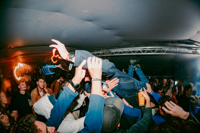 Tristan, dans la vraie vie, est un type bien élevé, discret quand il ne connait pas. Il aime bien chambrer, il est d’ailleurs assez fort à cet exercice, mais sait se tenir. Là ? Il monte sur scène. Je n’en crois pas mes yeux. Il est sur scène, il se tourne face au public, écarte les bras façon saut de l’ange et se laisse tomber en avant. Un bon vieux slam, à l’ancienne. Le public a joué le jeu, tendu les mains en l’air et le porte, allongé. Je ris et croise le regard de Jean-Luc, qui me demande : « C’est pas ton frangin lui ?! » Si. C’est mon frangin. Et je viens de réaliser à quel point il était punk.